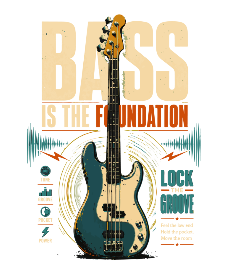 Your statement as bass player, musicians and music lovers.This distressed design illustration is perfect for bassists, the master of groove.